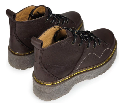 Características principales: - Material exterior e interior: Cuero genuino - Taco: 5.5 cm - Plataforma: 4 cm - Caña: 9 cm - Base: Goma pegada y cosida - Horma: Estándar - Diseño: Borcego clásico con cordones